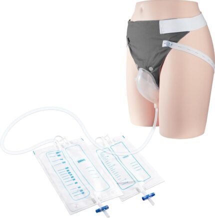 Wearable Urine Collector Set for Men with Soft Cotton Pants 2000ml Night Bag 1000ml Day Bag Silicone Collection Cup and 1.2M Flexible Tube for Daily Comfort Travel or Outdoor Use