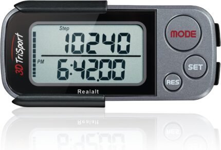 Realalt 3DTriSport Walking 3D Pedometer with Clip & Strap, eBook Included 30 Days Memory Accurate Step Counter, Walking Distance Miles/Km, Calorie Counter, Daily Exercise Time Monitor