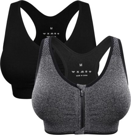 Women’s Zip Front Sports Bra Wireless Post-Surgery Bra Active Yoga Sports Bras