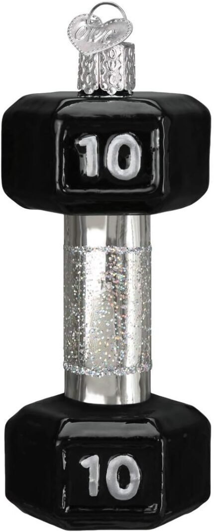 Old World Christmas Dumbbell Glass Blown Ornament for Christmas Tree, Handcrafted Holiday Decoration, Sport Collection