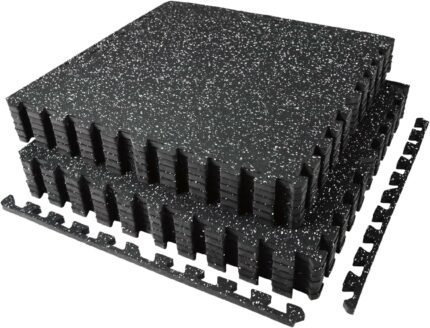 1/2in Thick 48 Sq Ft Rubber Top High Density EVA Foam Exercise Gym Mats Non-Slip 12 Pcs – Interlocking Puzzle Floor Tiles for Home Gym Heavy Workout Equipment Flooring – 24 x 24in Tile, Black & White