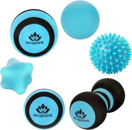Massage Ball Therapy Set for Muscle Knots and Post-Workout – Physical Therapy Balls, Trigger Point & Yoga Therapy, Massage Ball for Feet – 6-Piece Set (Blue)