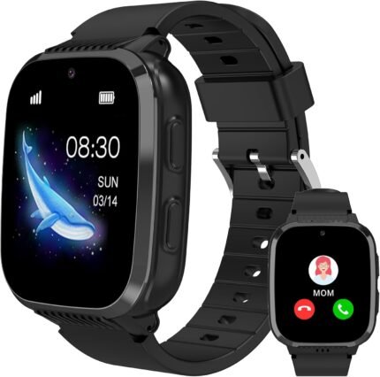 4G Kids Smart Watch with GPS Tracker, Kids Cell Phone Watch with Video & Voice Calling Texting SOS Camera Class Mode 12/24Hr Alarm Games Pedometer, Smart Watch for Boys Age 5-12(Black)