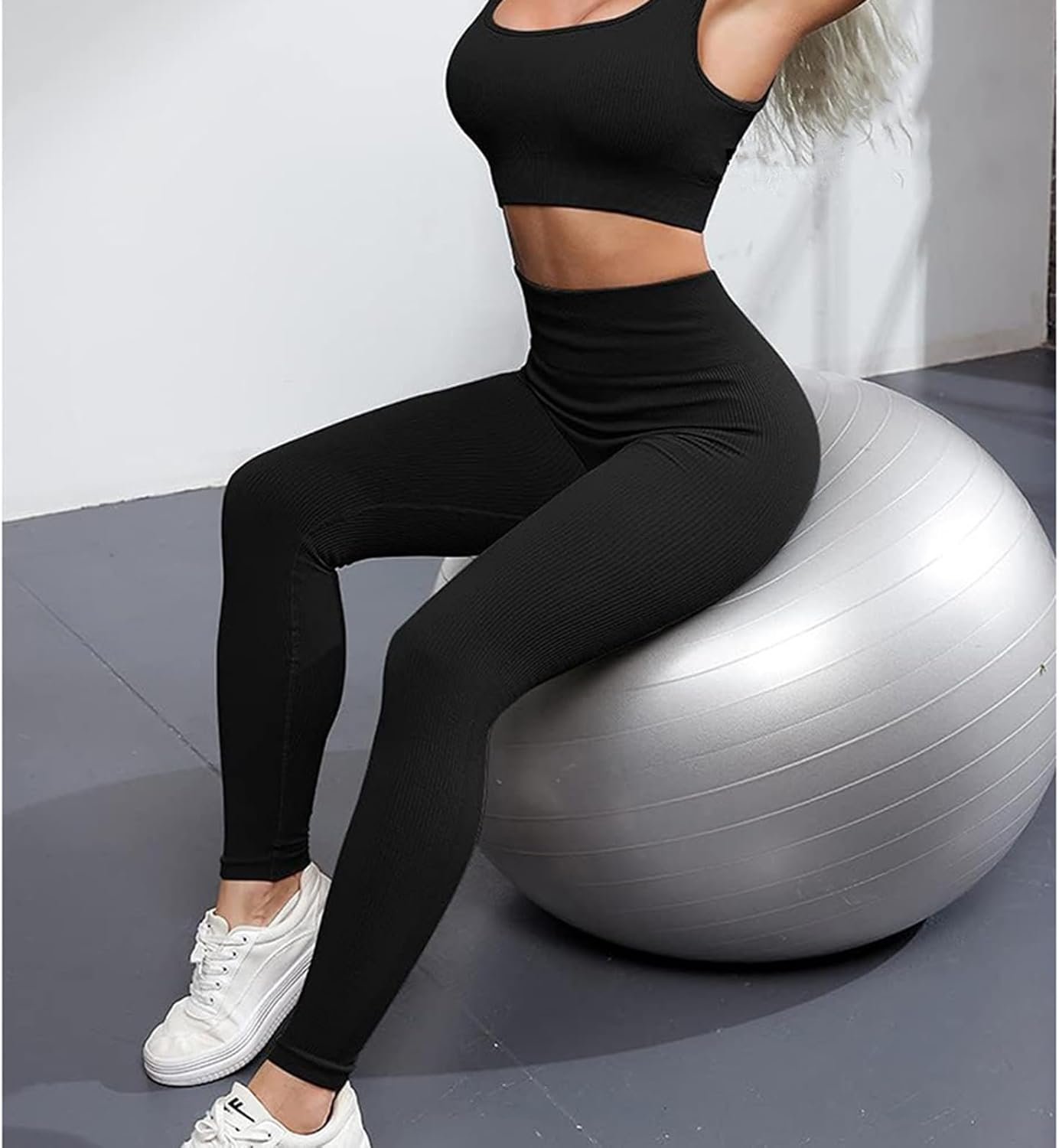 Our stylish and comfortable 4 piece workout set for women! Made with lightweight and moisture-wicking power fabric, this ribbed set is perfect for yoga, gym, and any other active activity. The high elasticity and breathable material provide ultimate comfort and flexibility, while the tummy control wide waistband contours your curves and shapes your body. The ribbed textured non-slip design ensures you stay in place during your workout, and the padded bra and leggings are thick enough to be non-see through and very supportive. The triangular design of the crotch provides ample coverage as you move from pose to pose and prevents thighs from rubbing. Various colors available black,pink,blue,red,brown,green,white,purple,light pink,hot pink,beige, burgundy,royal blue.