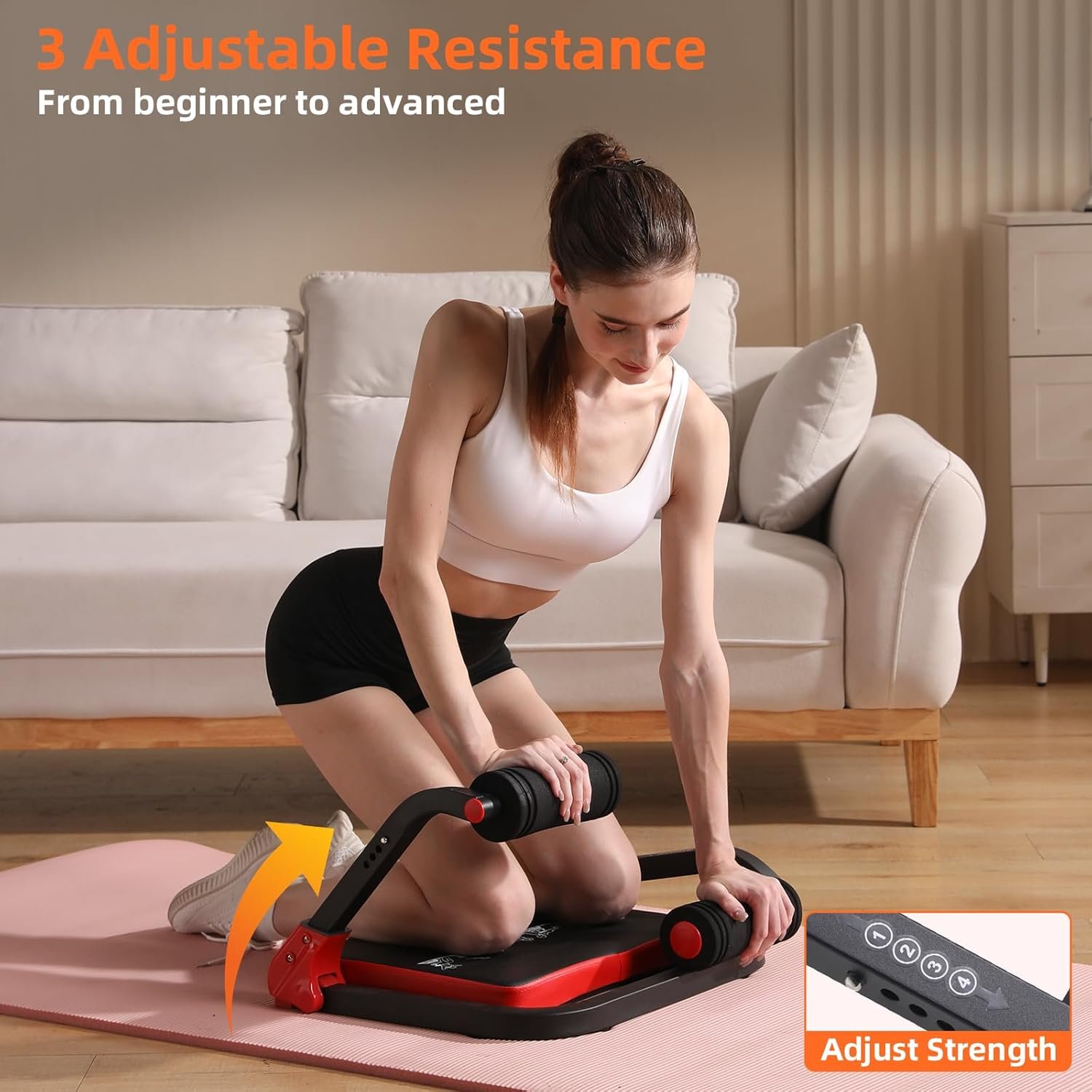 3-Level Adjustable – Customize your core workout with this ab machine, featuring 3 adjustable resistance levels to suit your fitness needs. Perfect for beginners to advanced users.