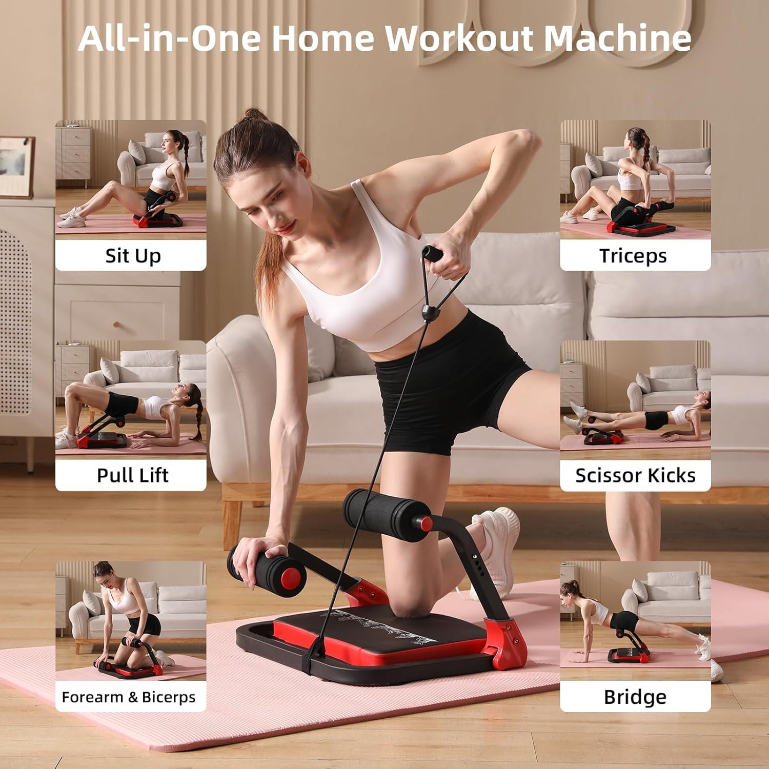 Ab Machine with Resistance Bands for Abdominal Exercise – 3 Levels Adjustable Sit-Up Exercise Equipment for Home Gym, Core & Full Body Workout