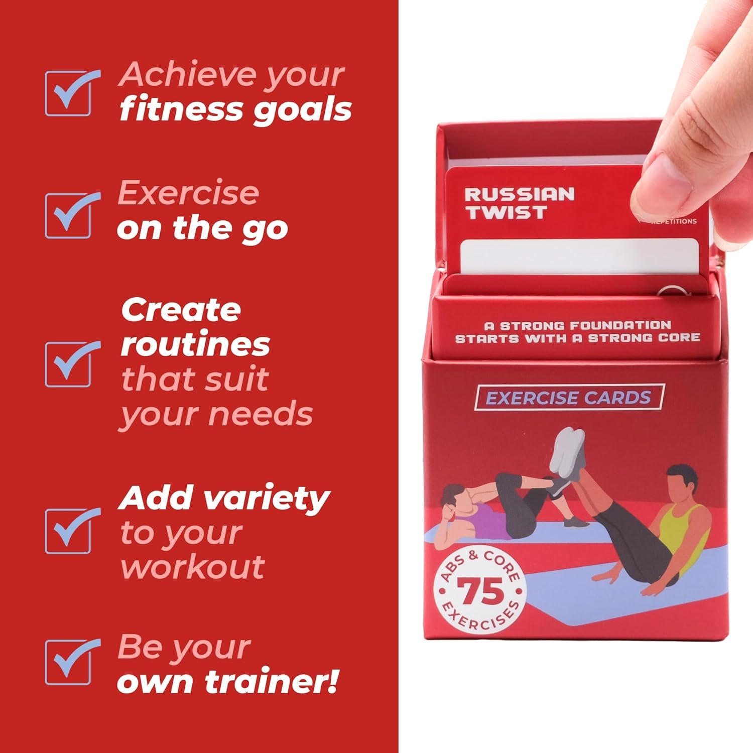 Abs and Core Exercise Cards – 75+ Workout Cards to Help Build Core Strength, Stability, Outdoor, Work from Home Fitness Workout