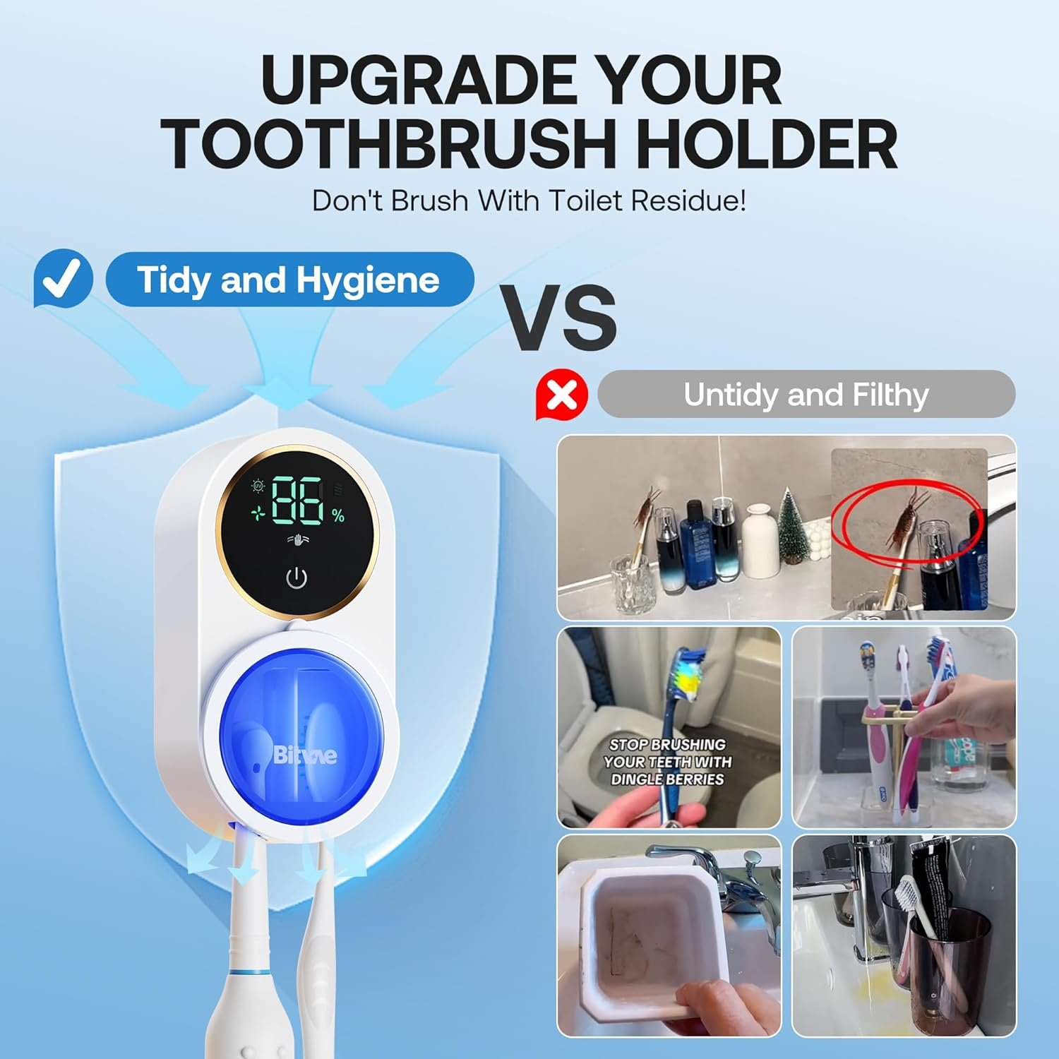 Cleaning Performance Certification: Say goodbye to hidden health risks! Studies from NSF show a 3-month-old toothbrush can carry 80x more dirty than a toilet seat. The Bitvae toothbrush cleaner is lab-certified to deliver effective cleaning, making this toothbrush cleaner your best defense for daily oral hygiene