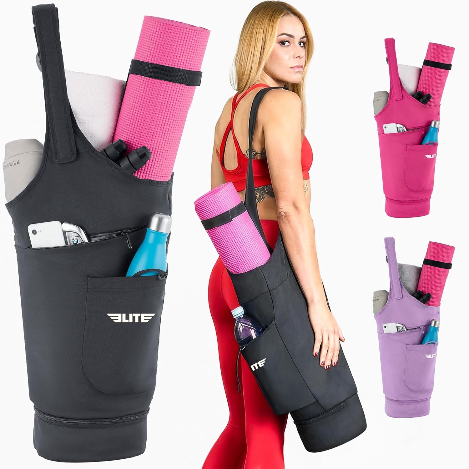 Elite Sports Yoga Bag, Versatile Yoga Mat Bag, Gym Bag, Holds Yoga Mat, Pilates Mat, Towel, Comes with Storage Pockets, Lightweight & Durable