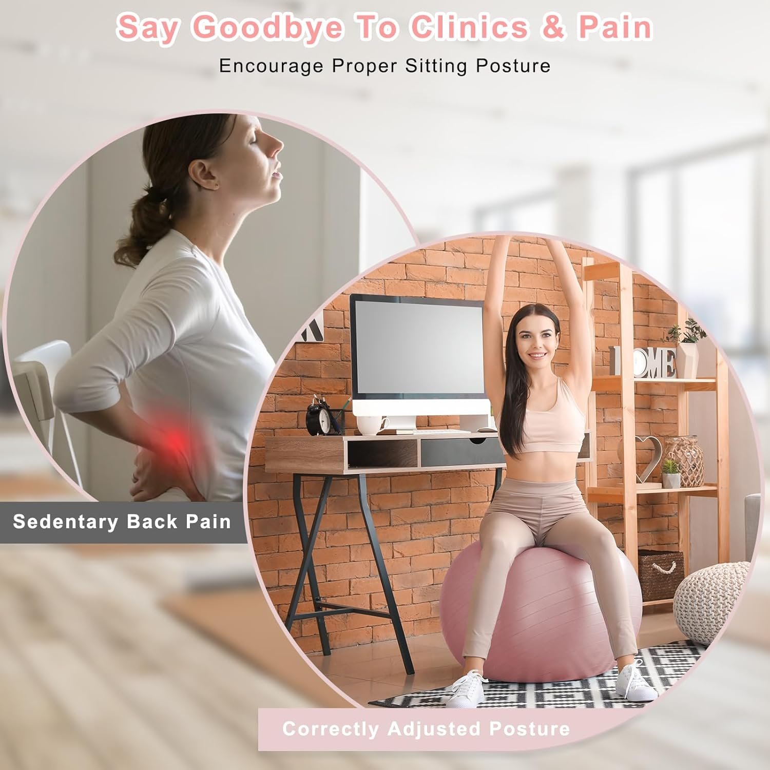 𝐄𝐧𝐡𝐚𝐧𝐜𝐞𝐝 𝐂𝐨𝐫𝐞 𝐒𝐭𝐚𝐛𝐢𝐥𝐢𝐭𝐲 𝐚𝐧𝐝 𝐏𝐨𝐬𝐭𝐮𝐫𝐞: Elevate your fitness journey by using our stability ball to fortify your core, providing vital support for the lower back. This dynamic workout accessory also enhances spinal blood flow, expediting recovery and promoting improved posture, balance, and core stability, ultimately reducing the risk of back pain.
