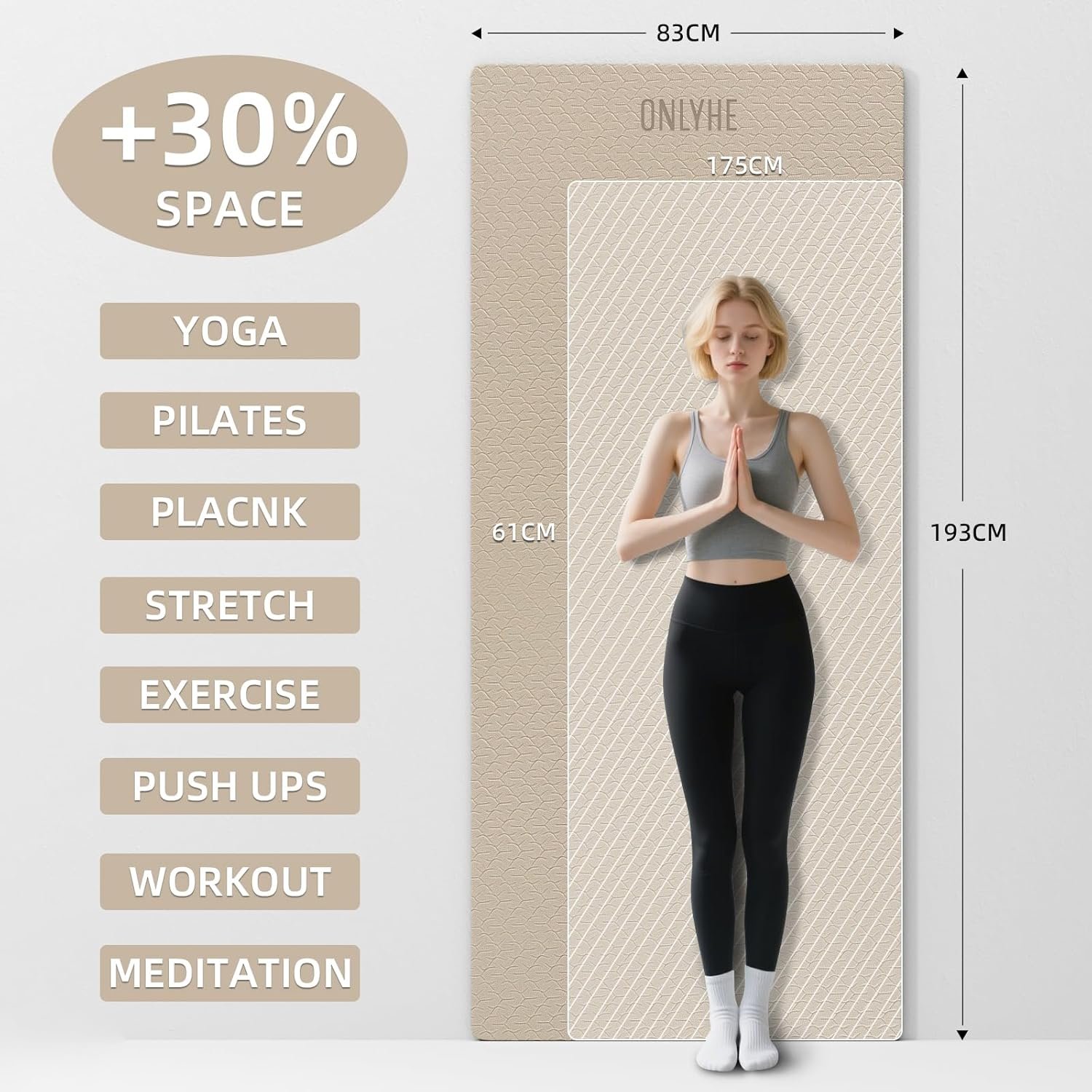 【ADDITIONAL SPACE DESIGN】193x83cm oversized surface (30% larger than standard mats) provides ample room for all yoga poses and dynamic movements