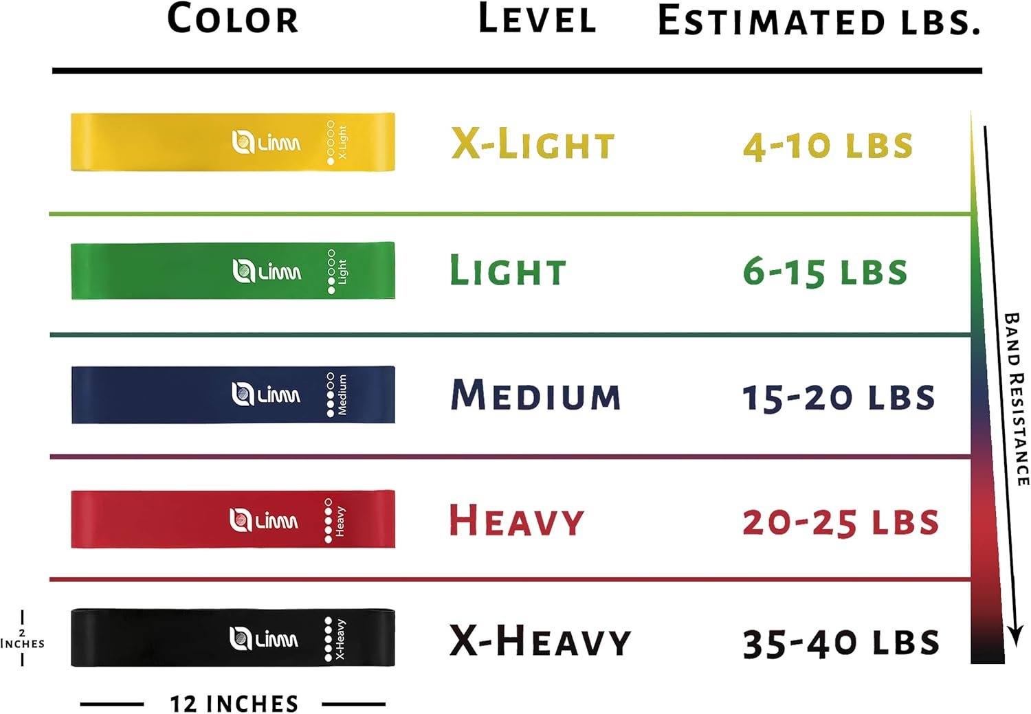 HIGH-END RESISTANCE BAND SET. Our heavy-duty loop resistance bands include 5 varying resistance levels. Extra light & light bands are great for beginners and rehabilitation, while medium, heavy & extra heavy exercise bands are for intermediate & advanced users.