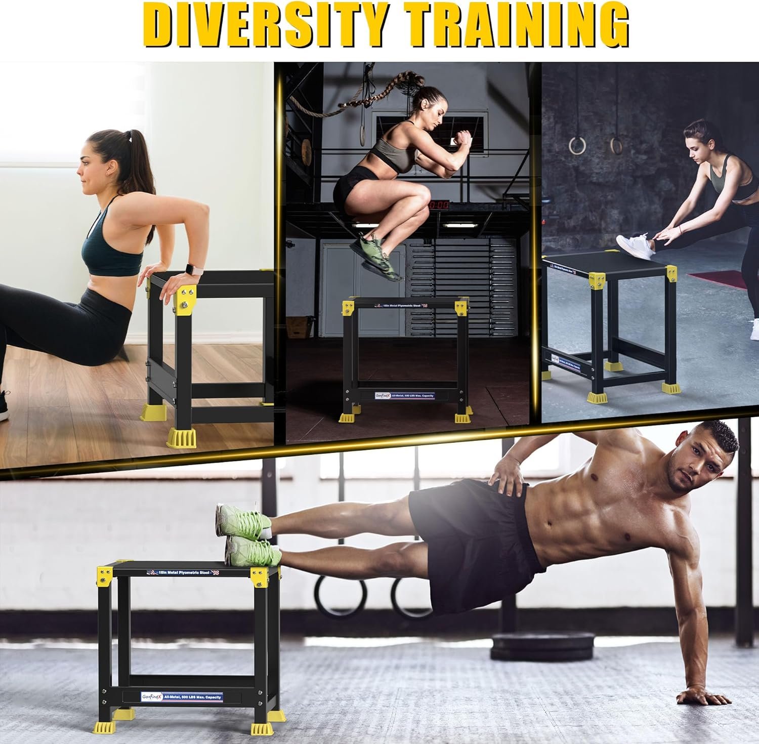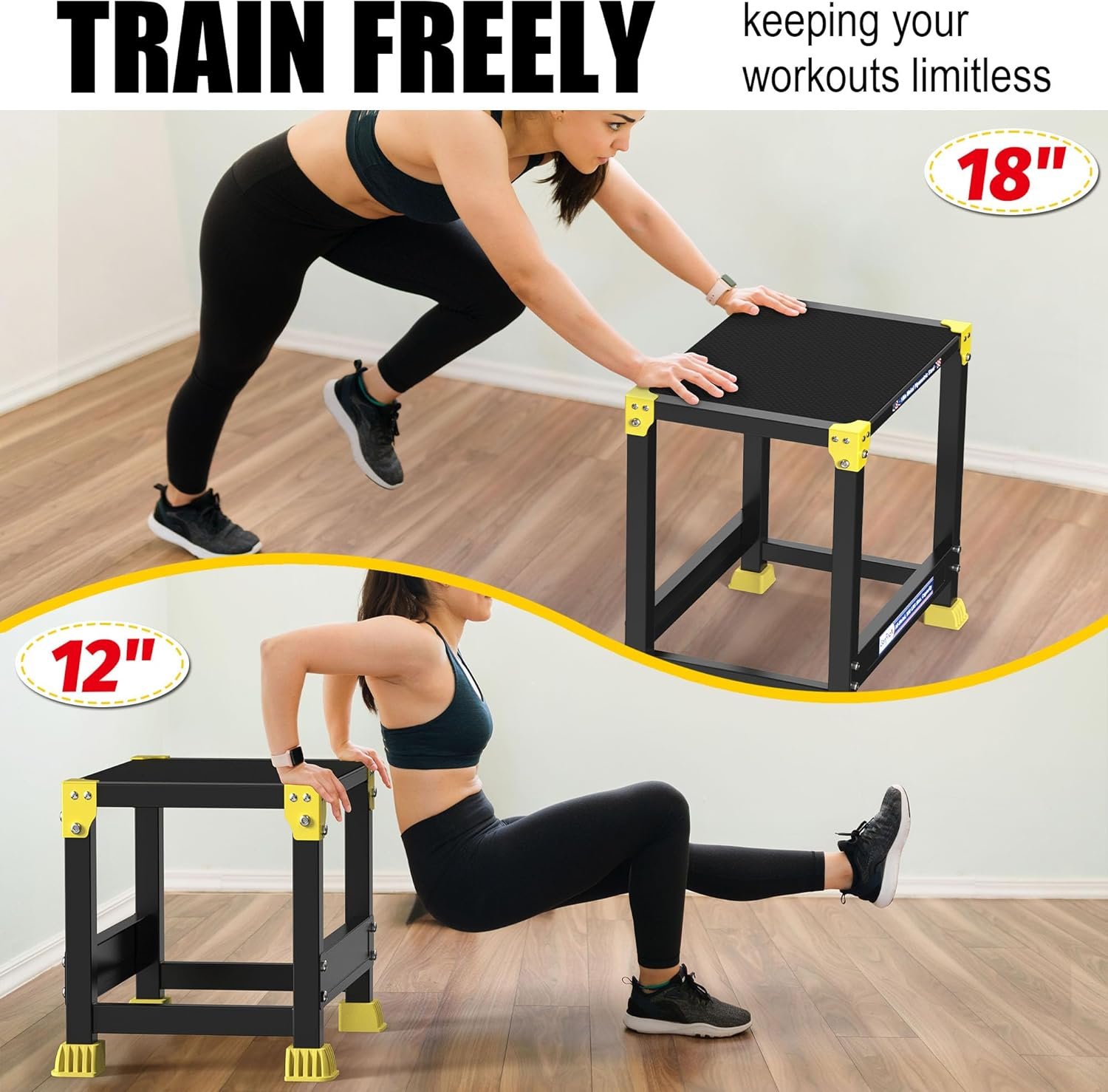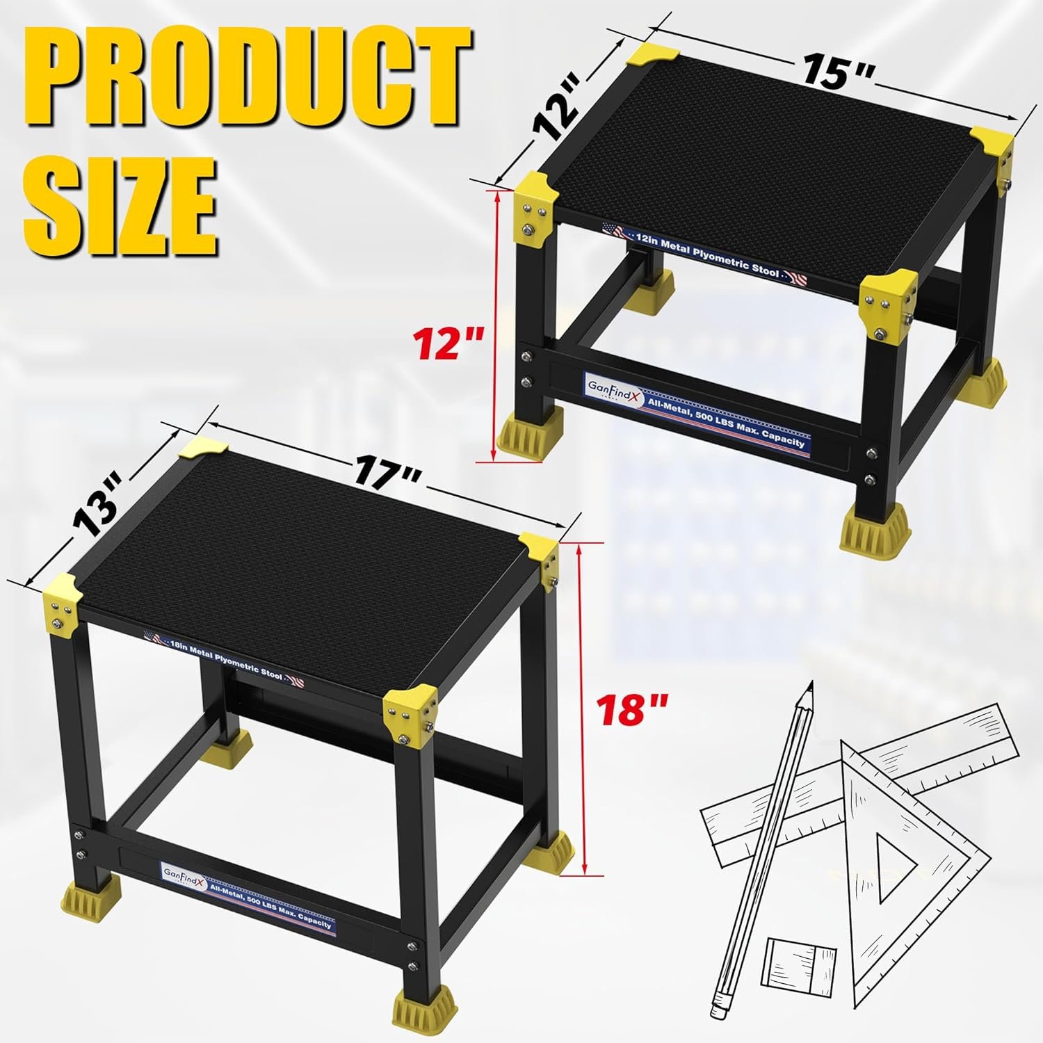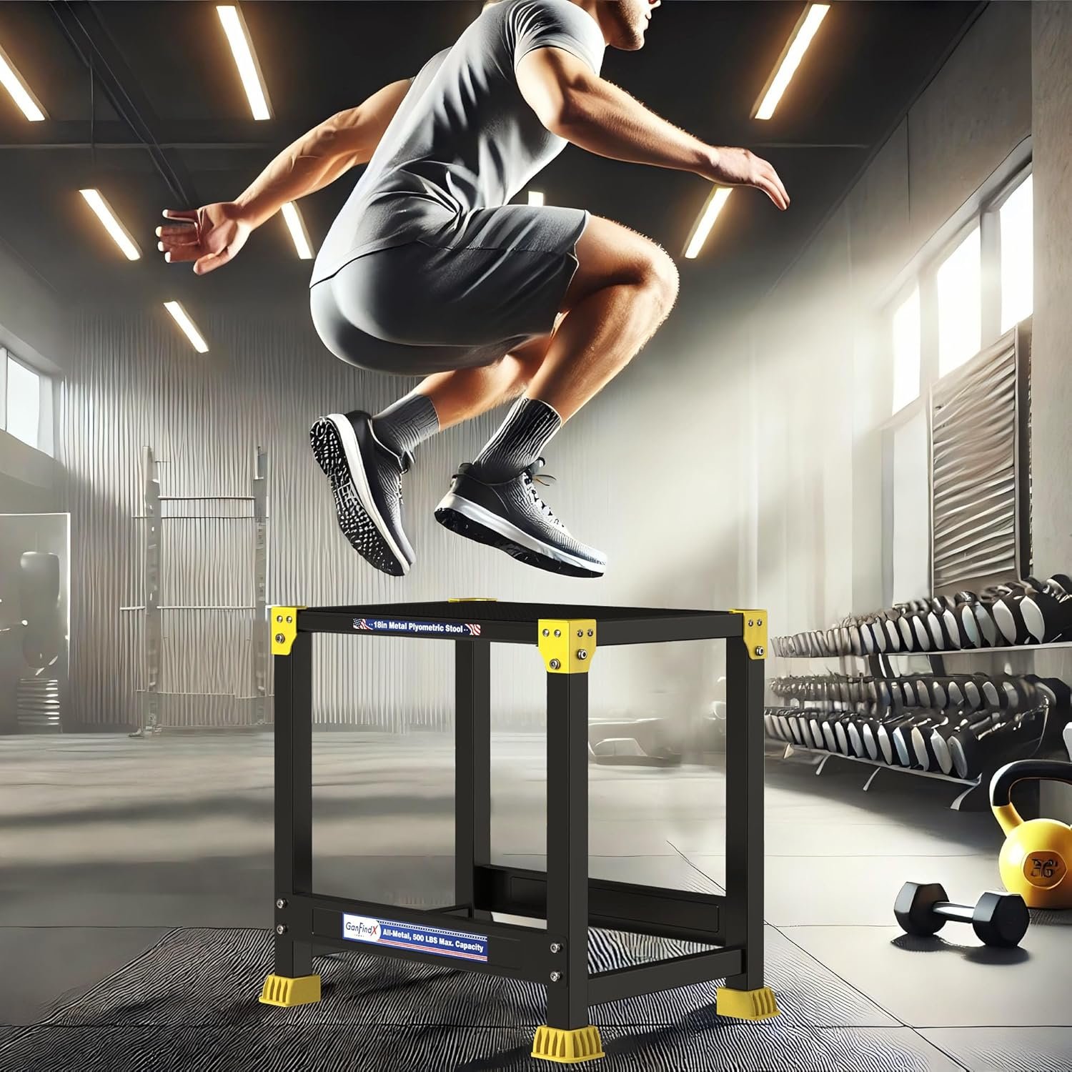 GanFindX Steel Plyo Box 12/18 Inch Surface Metal Plyometric Jumping Box Home Gym Jump Trainer for Fitness Exercise Agility Stamina Conditioning Strength Training