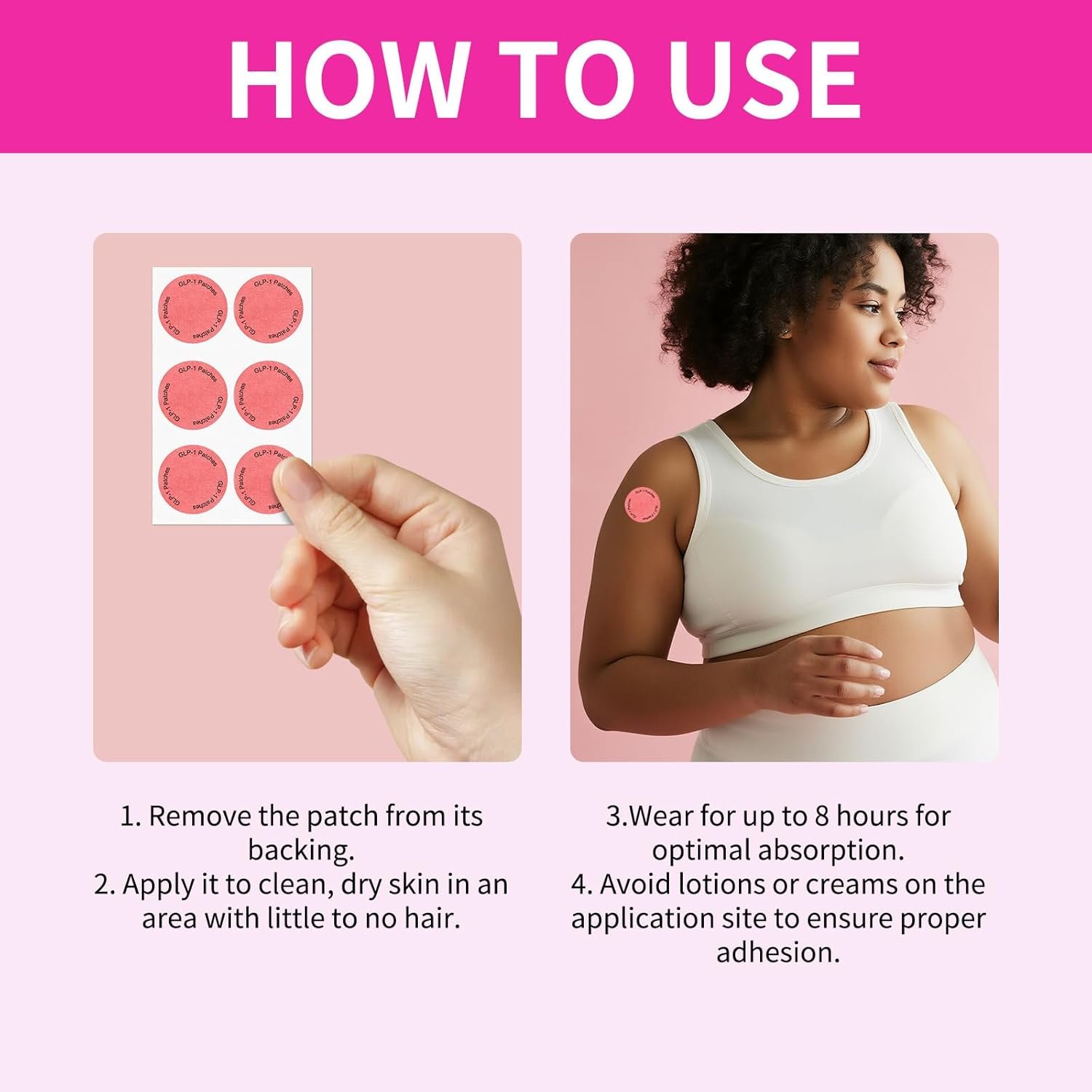 GLP-1 weight patch designed with botanical extracts to complement your active lifestyle. Ingredient safety, wear lt easily breathable comfortable is gentle and skin-friendly. Natural lngredients patch can provide you with up to 8 hours of care effect. Patches are a simple and effective way to incorporate plant-based ingredients into your routine. Simply apply to clean, dry skin. Easy removal: removal of the patches is very simple, just apply water or oil for easy and smooth removal.