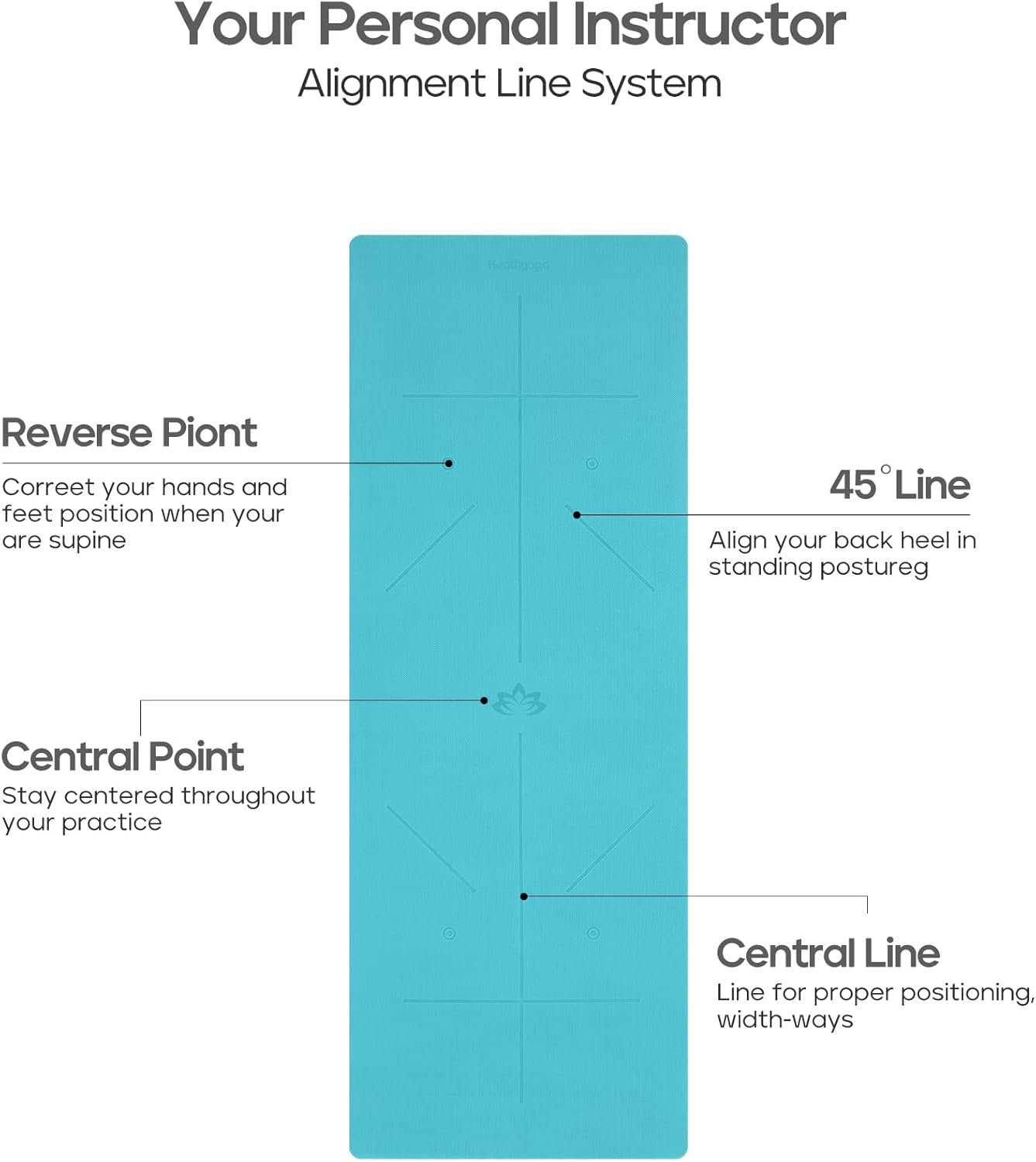 Heathyoga Eco Friendly Non Slip Yoga Mat, Body Alignment System, SGS Certified TPE Material – Textured Non Slip Surface and Optimal Cushioning,72″x 26″ Thickness 1/4″