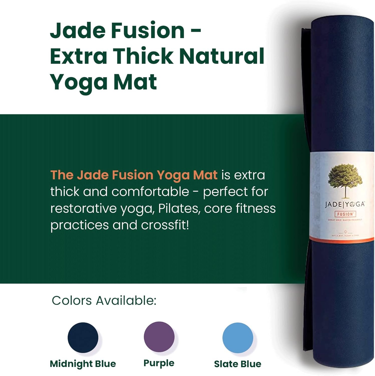 PREMIUM QUALITY: JadeYoga mats are specially designed to provide a superior level of traction. We only use natural rubber because it provides a better grip and has more cushion and is better for the earth than synthetic rubbers (PVC, PER, TPE, EVA). The result is a yoga mat that provides grip, comfort, and durability.