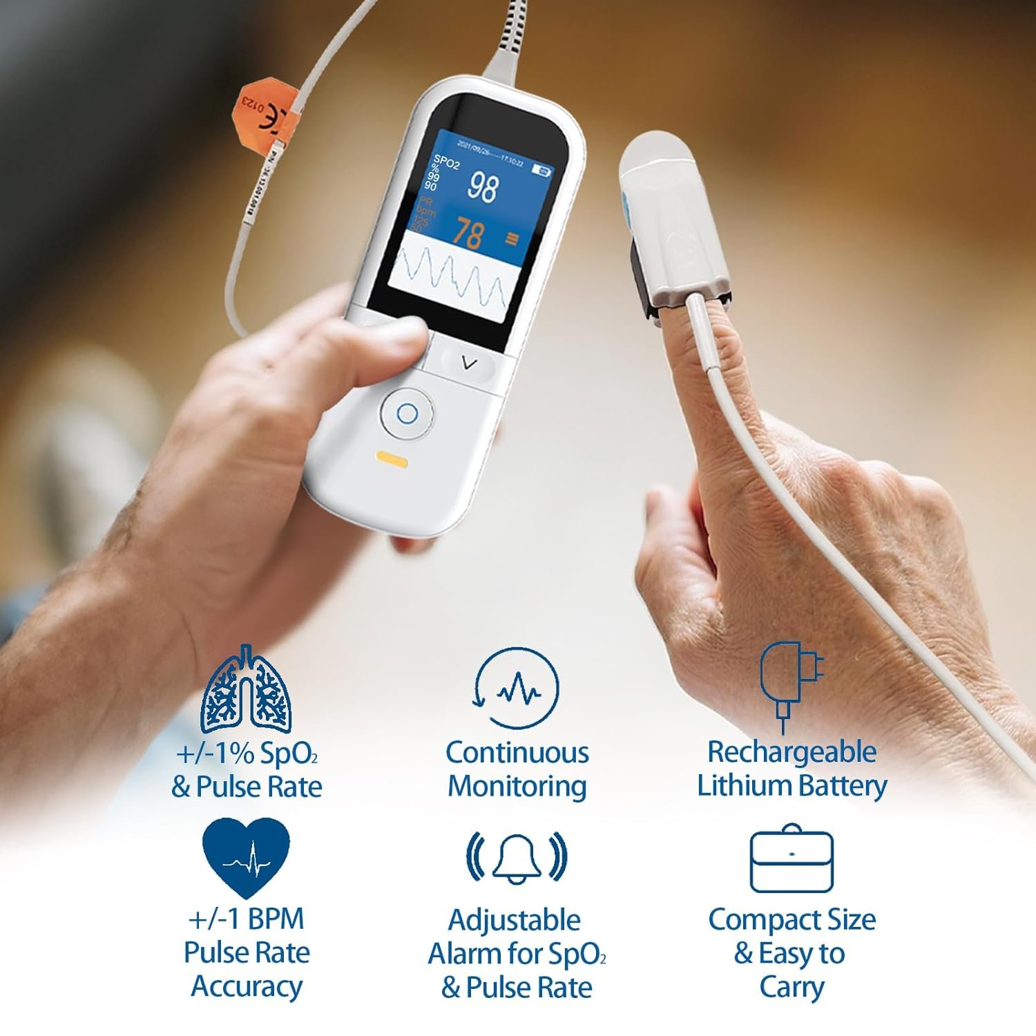 Medical Grade Pulse Oximeter for Adults – Continuous Monitoring, Adjustable SpO2 & Pulse Alarms, Rechargeable Handheld Oximeter Profesional Oximetro, Data Traceability, Instant Alarm