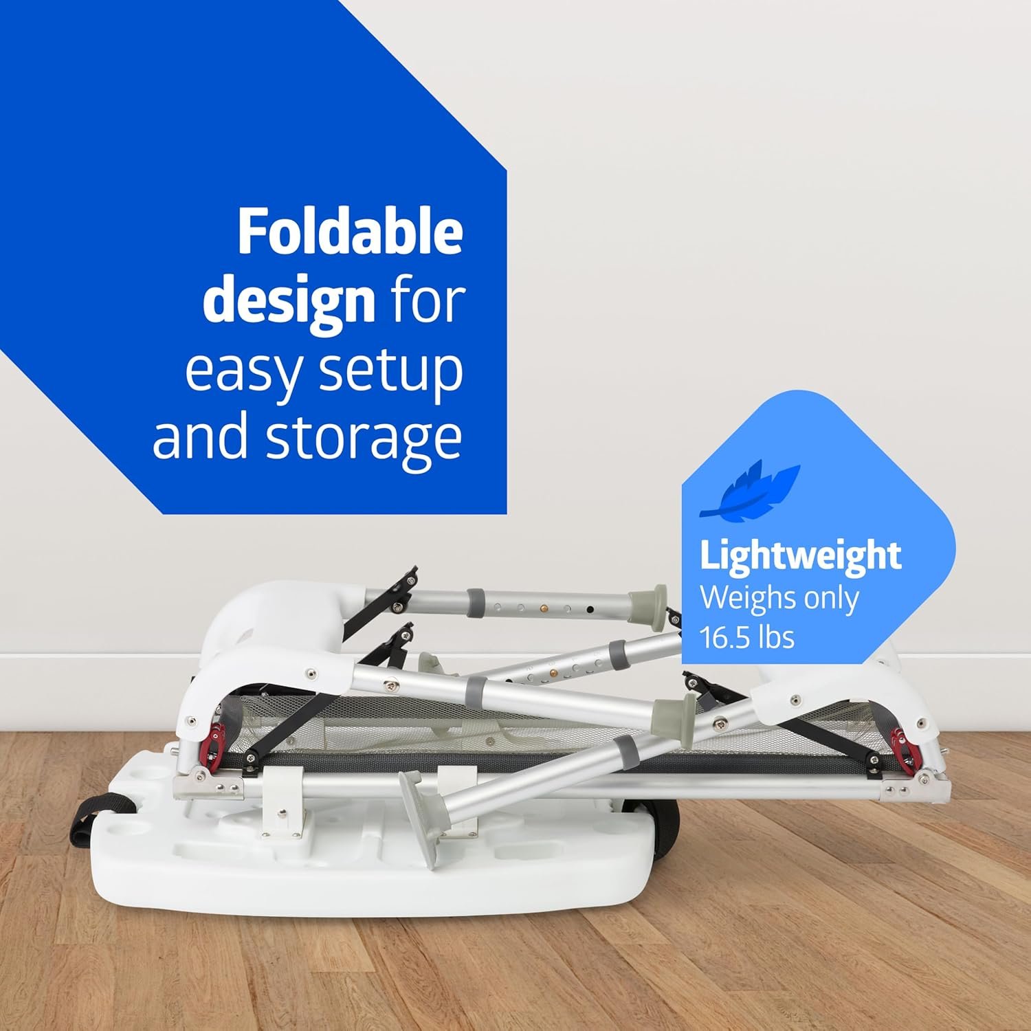 Features slip-rsistant suction cup feet for greater stability in the shower