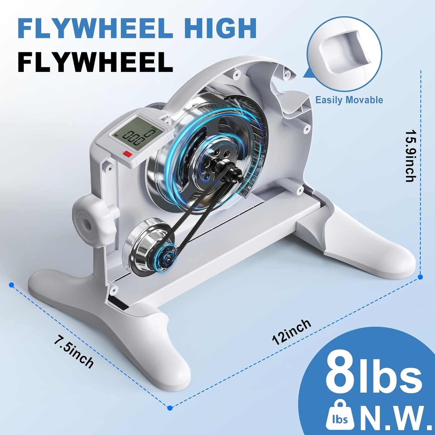 【Featherlight & Space-Smart Design】At only 7.3lbs and 40.5x19x30.5cm, this portable pedal exerciser includes carry handles. Use on floors for leg mini exercise bike workouts or tabletops for arm toning – ideal for apartments/dorms/RV life.
