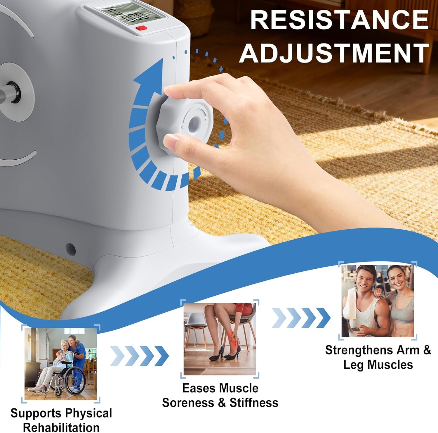 【Senior-Safe Stability System】Non-slip pedals with 4-point adjustable straps secure feet/hands during vigorous under the desk pedal exerciser sessions. The widened base prevents tipping even at max resistance
