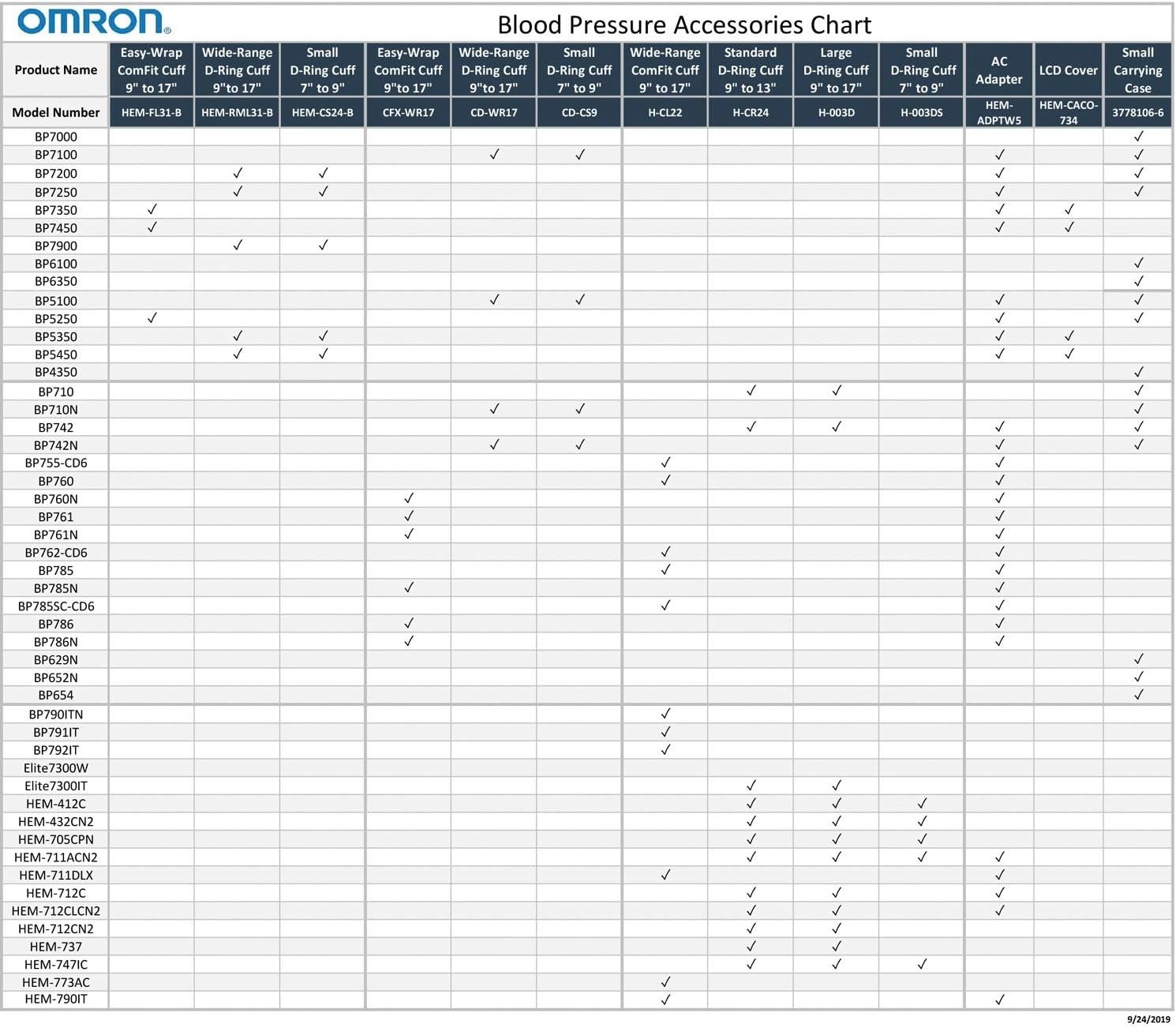 The Omron blood pressure cuff alignment is an important component of measurement accuracy, so if your cuff is misaligned, it can contribute to inaccurate results. The expanded coverage Omron easy-wrap ComFit cuff inflates around the entire circumference of your arm to help ensure that the brachial artery is compressed for a comfortable, accurate reading. Pre-formed for easy application, This Wide-Range cuff fits both standard- and large-sized arms, 9 in. To 17 in. In circumference. When purchasing a home blood pressure Monitor, it’s important to know your appropriate cuff Size. To determine your proper cuff Size, Use a cloth measuring tape and measure the circumference of your left upper arm, midway between your elbow and shoulder. Ensure that the blood pressure cuff is neither too tight nor too loose to help ensure the most Accurate readings and provide you a more accurate picture of your heart’s health. This cuff is only compatible with the following Omron blood pressure Monitor models: BP5250, BP7350, and BP7450.