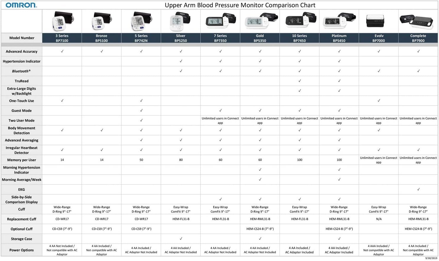 Compatible with Omron blood pressure monitor models: BP5250, BP7350, and BP7450