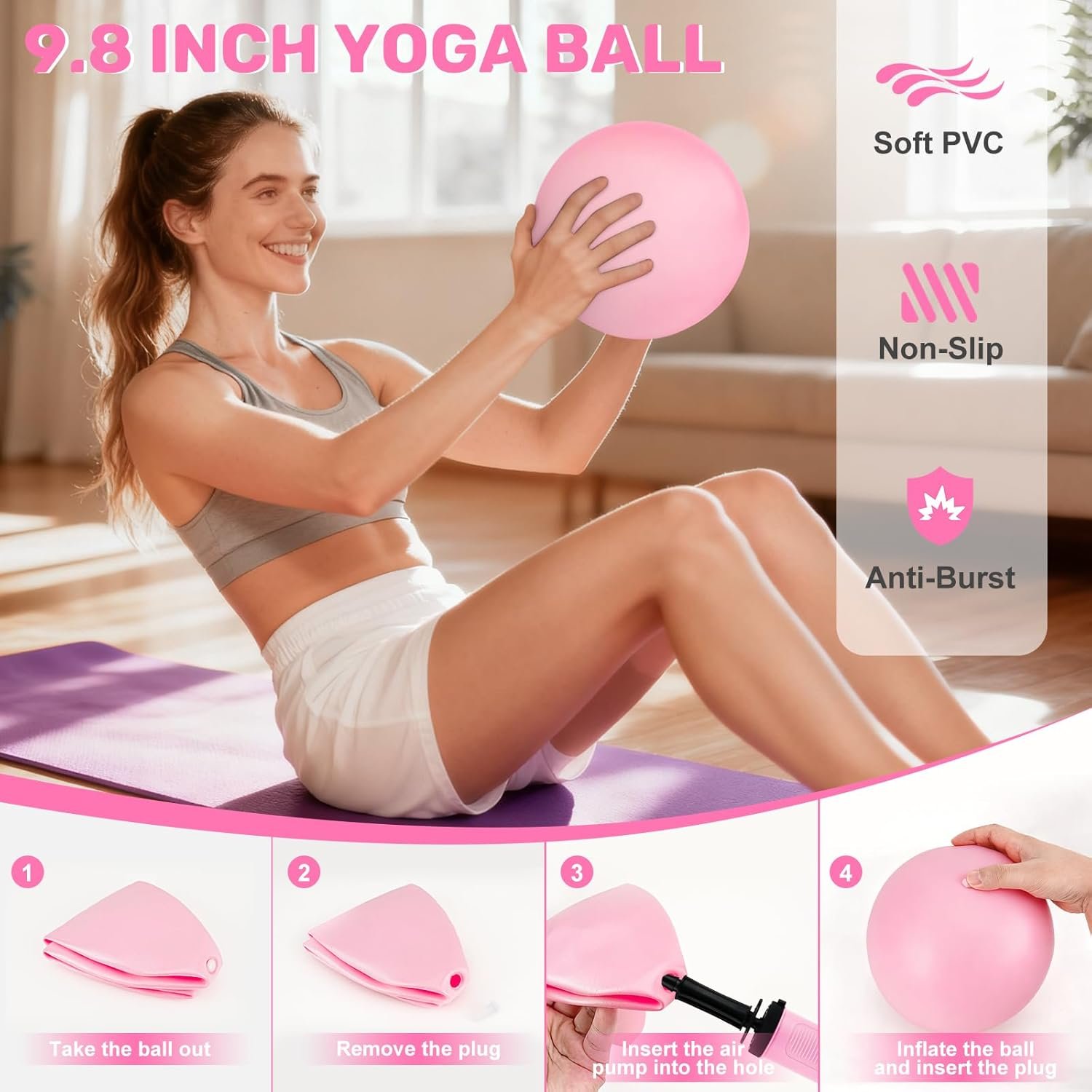Bring the power of Pilates into your home with this 15PCS Home Pilates Kit for Women, designed to help you tone, strengthen, and stretch your entire body. The set includes a 12.5″ Magic Circle, mini Pilates ball, 5 resistance bands, grip socks, and more—everything you need for a balanced, full-body workout.
