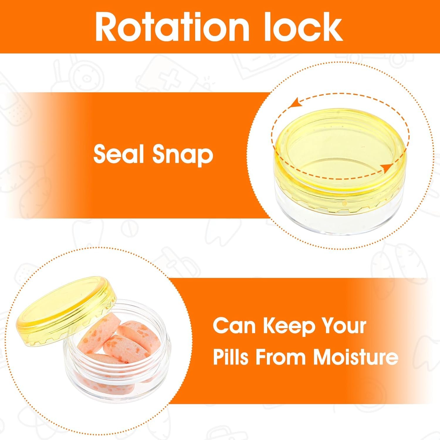 【Good Sealing】: The small pill organizer uses a screw cap, better sealing and effectively prevents leakage, and the single pill box can also prevent accidental opening, so you don’t have to worry about soiling your bag.