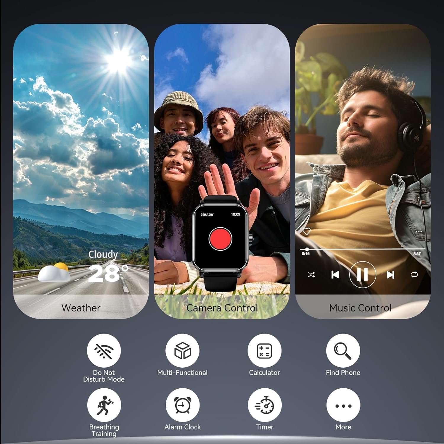 Bluetooth Calling & Cross-Platform Compatibility: Make calls directly from your wrist! Built-in Bluetooth calling keeps you connected without your phone. Seamlessly pairs with Android & iOS for real-time notifications, music control, and app alerts
