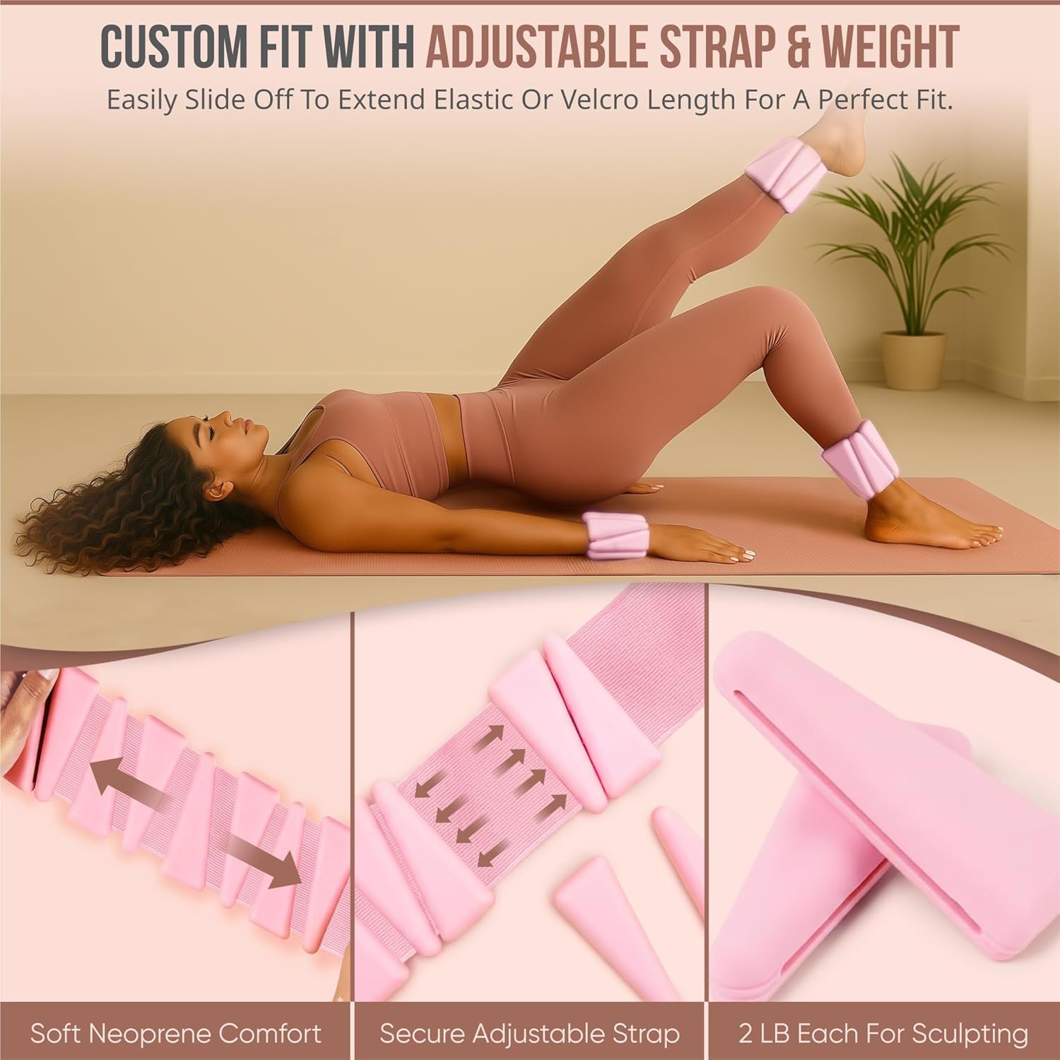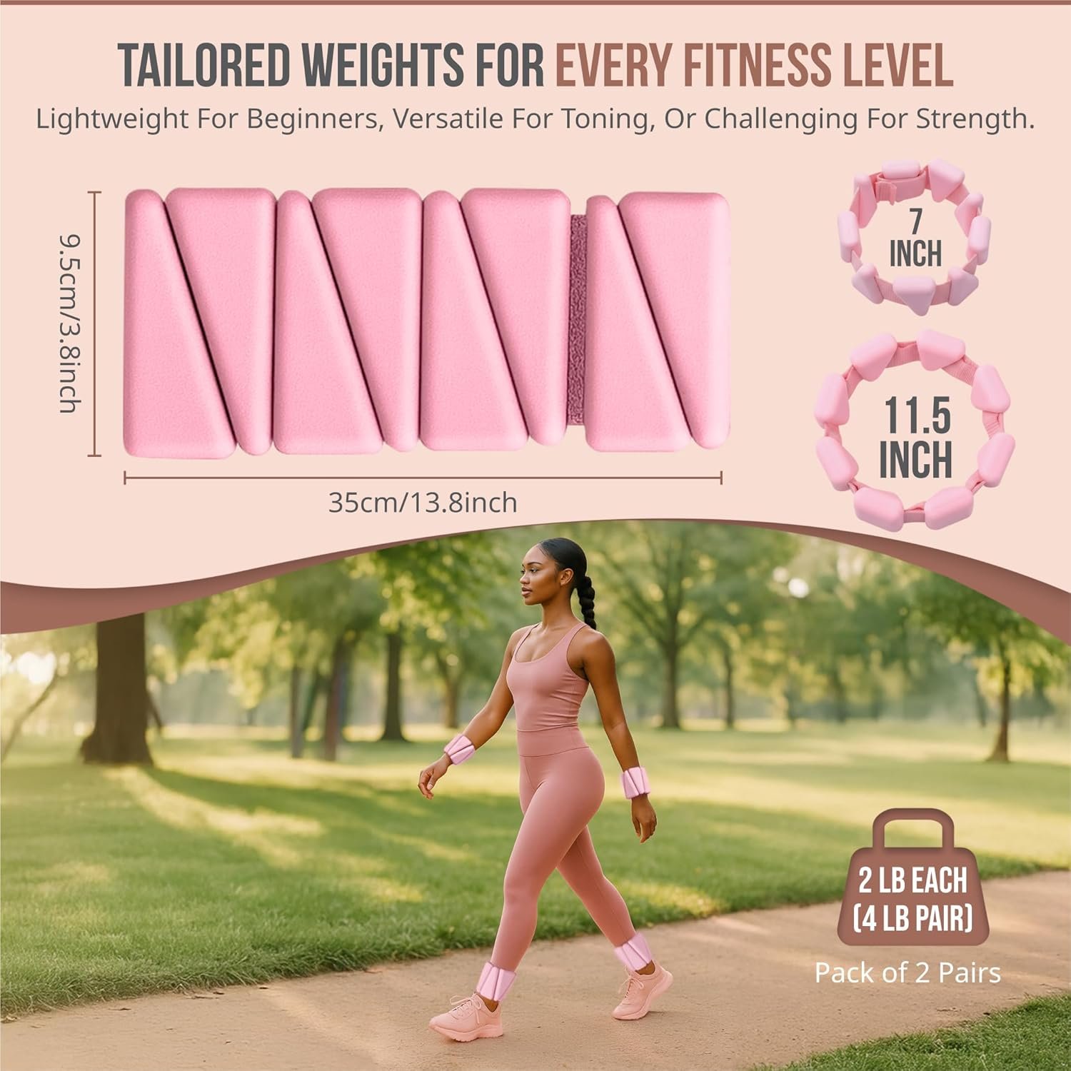 Solaea Straps – Adjustable Wrist & Ankle Weights, 4lb Total (2lb Each) Soft Silicone Set for Pilates, Yoga, Walking & Strength Training (Pink)