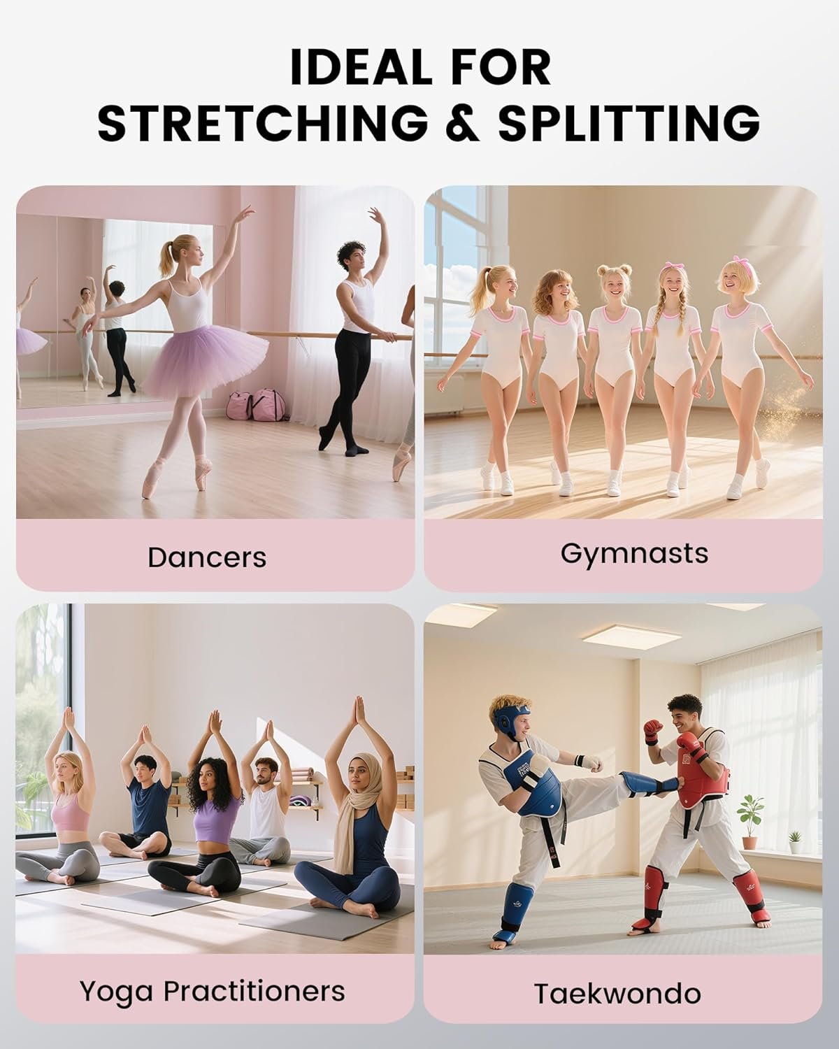 Suitable for Various Settings: Enjoy flexibility training at home, dance or yoga studios, and the gym