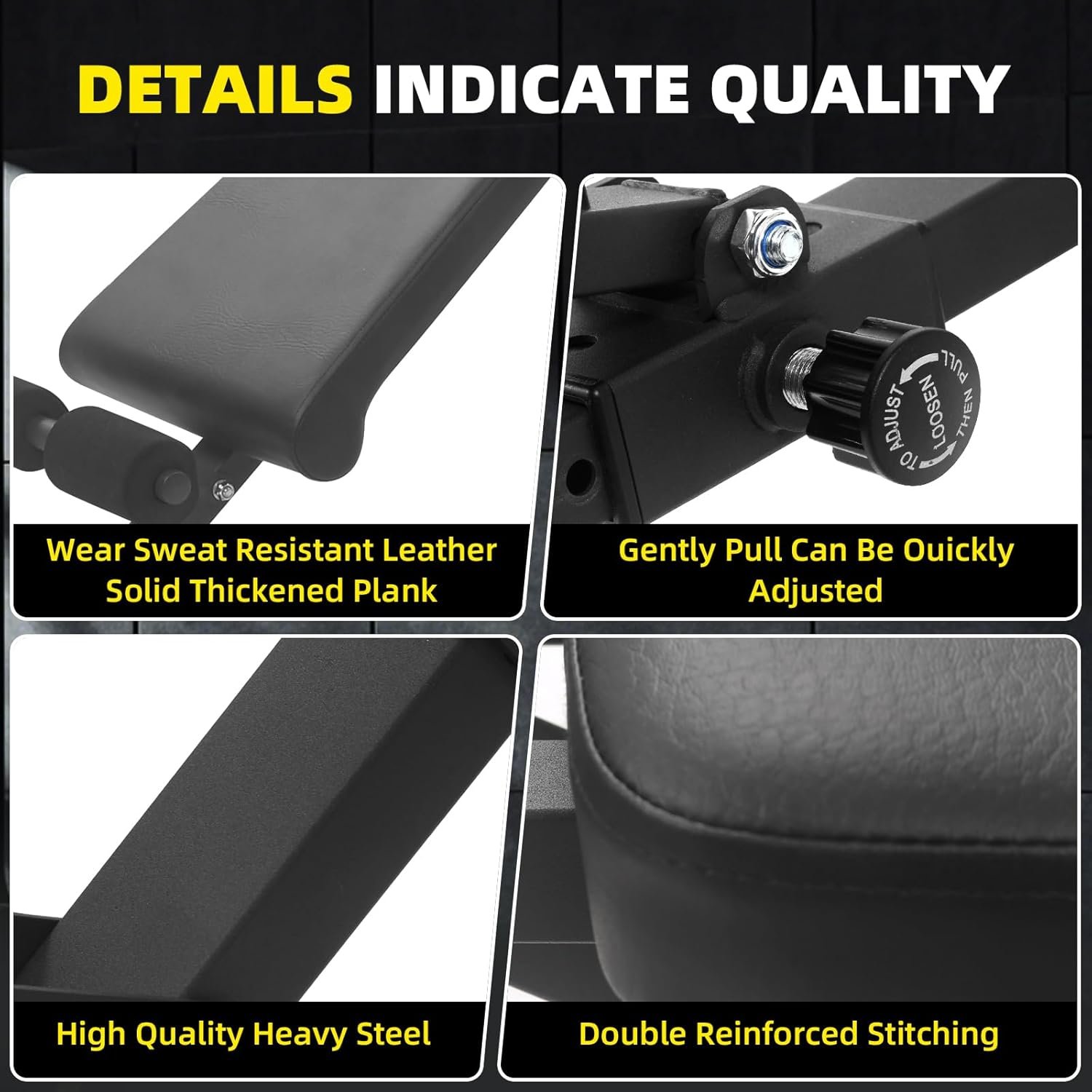 Stable & Supportive Design: Standing at a height of 16.1 inches, this weight bench delivers excellent foot grip and stability during workouts. The durable leather surface is designed to enhance friction, ensuring a secure and confident exercise experience every time