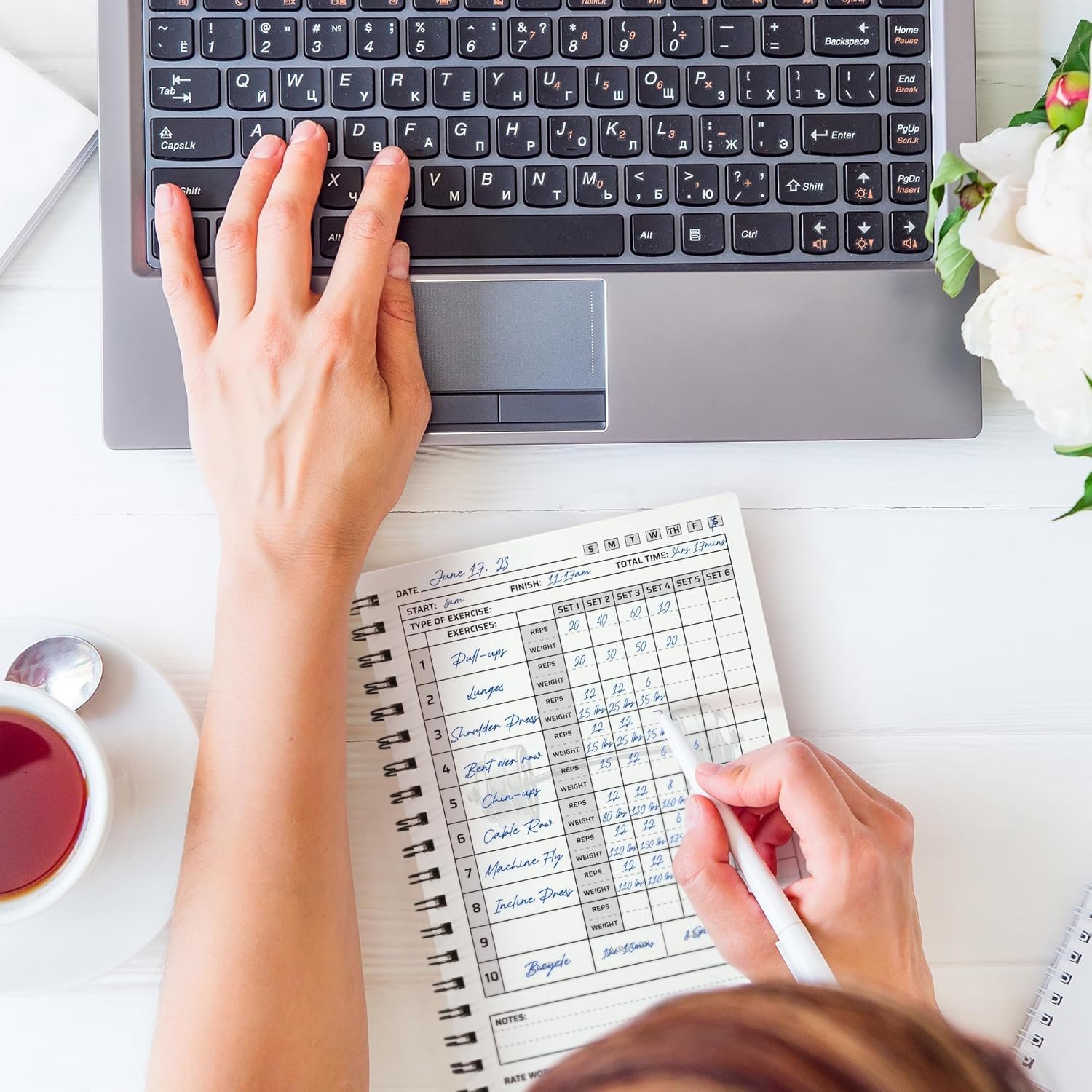 Experience premium quality with our fitness journals. The durable journal cover is built to withstand the toughest gym environments, protecting your records from wear and tear. The heavy-duty paper ensures that your notes are safe from smudges and sweat, maintaining their integrity over time. Double wire binding spirals add an extra layer of durability, ensuring that your journal remains intact, no matter how frequently you use it. This journal is built to last, offering you a reliable resource for your workouts.