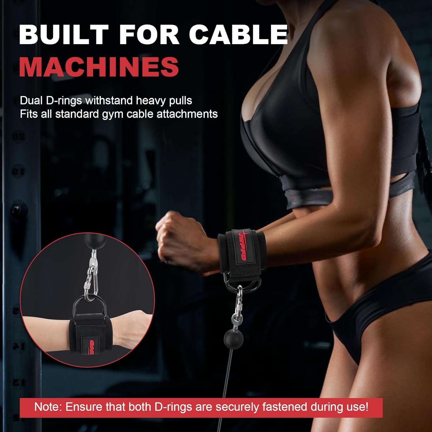 SECURE & DURABLE CONNECTION: Equipped with two robust reliable D-rings for attachment to cable machines, carabiners, or resistance bands, ensuring long-lasting use.